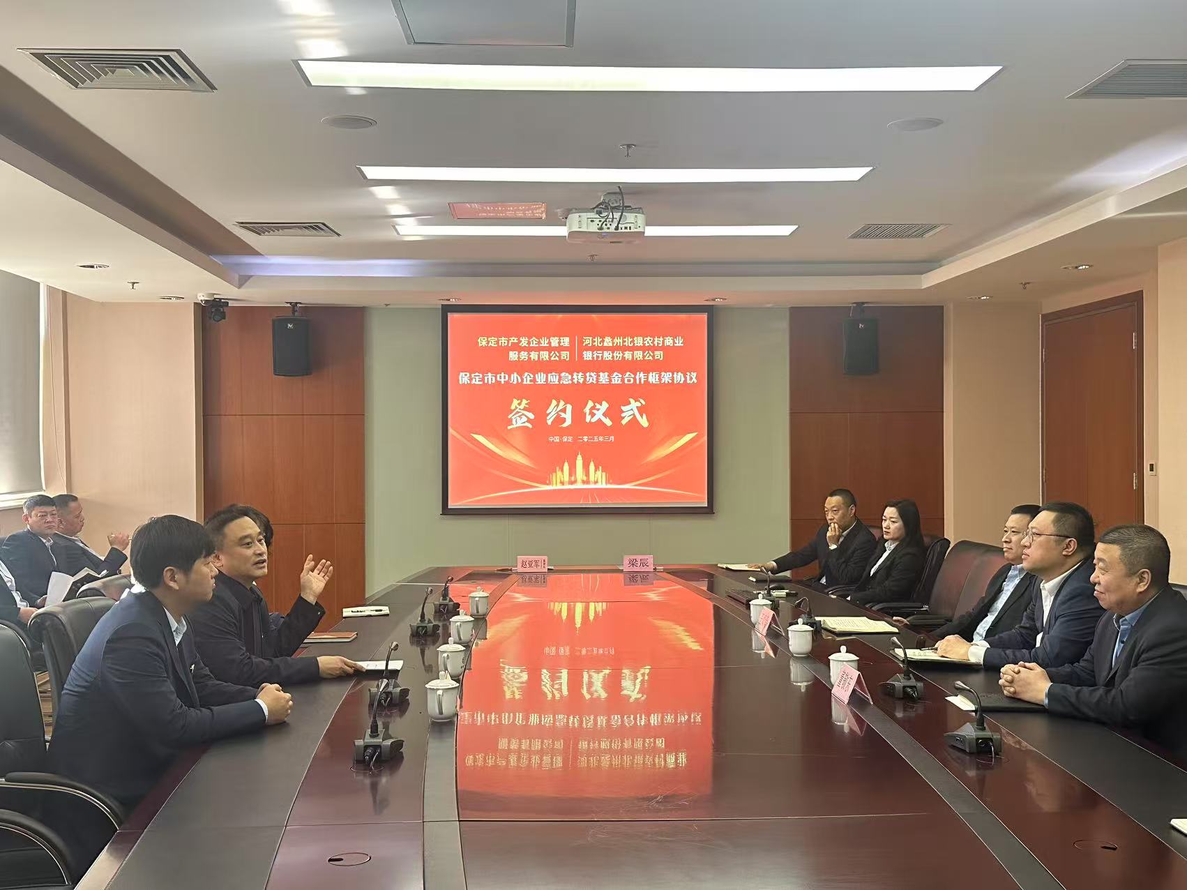 ??3月19日,企服管理公司與河北蠡州北銀農(nóng)村商業(yè)銀行正式簽署《保定市中小企業(yè)應(yīng)急轉(zhuǎn)貸基金合作框架協(xié)議》。